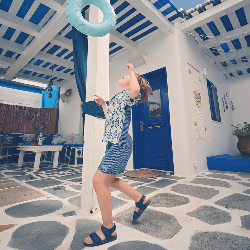 The back is detailed with delicate blue-and-white stripes, adding a refreshing contrast and a breezy coastal feel.